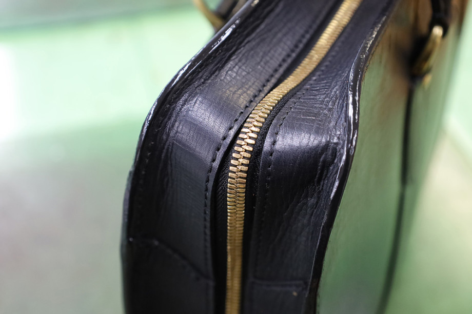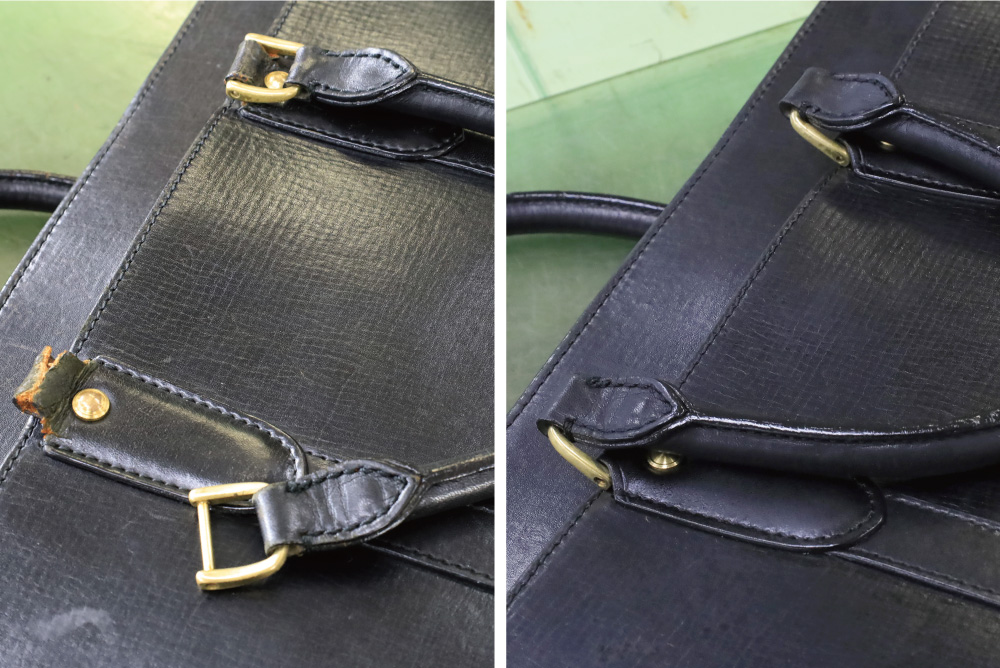 今回はロングセラーのビジネスバッグ《E765 ブリーフケース A4ワイド》の、革パーツ交換の様子をご紹介します。