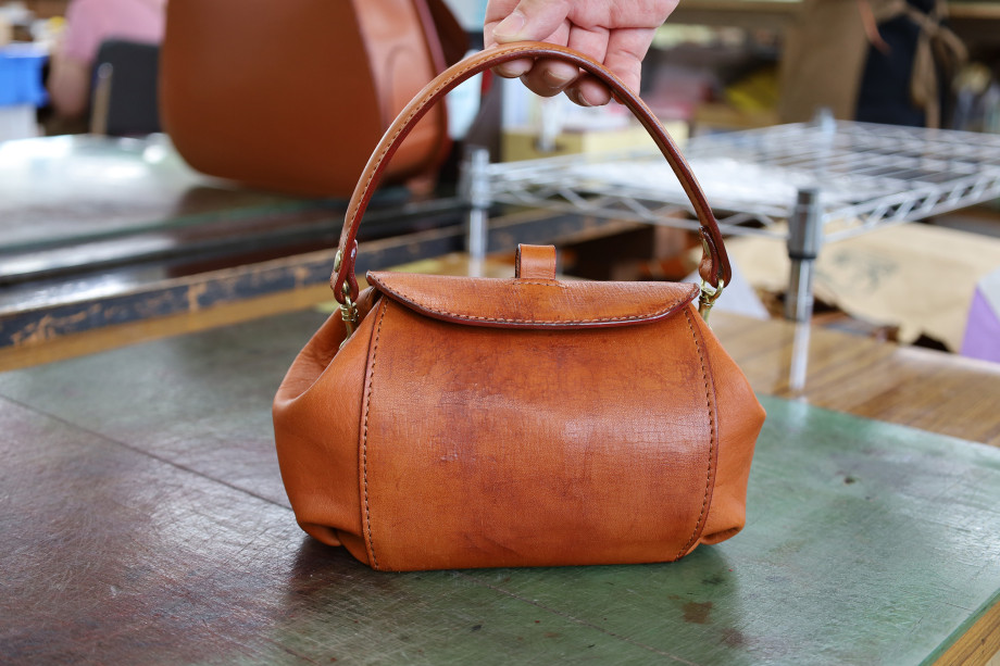 今回は人気のミニポーチ、《M517 パンプキンポーチ 2way》の、革パーツ交換の様子をご紹介します。