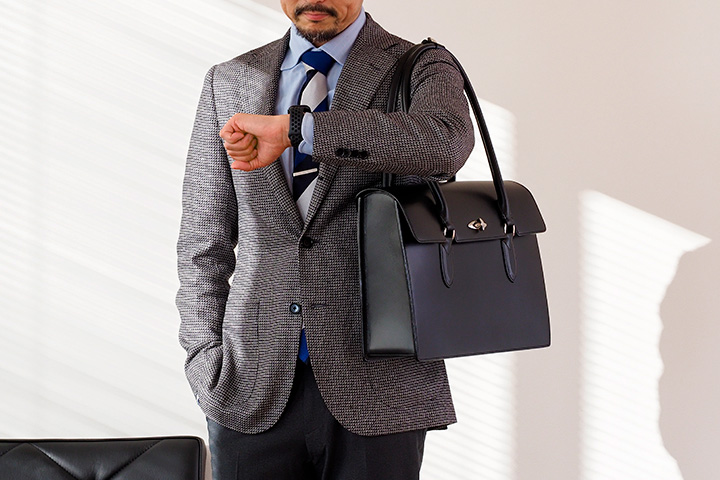 カブセのヒネリ金具が印象的な「クラシックトートバッグ A4(ヒネリ)」は無駄をそぎ落とした端正なフォルムが魅力。男性にも女性にも自信をもってお勧めしたい新作です。