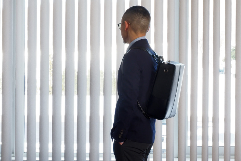 また、同じ金具を使用した「スリムリュックサック A4(ヒネリ)」はいたがきに今まで無かった新しいデザインのリュックサック。深みのあるブラックとシルバー金具で洗練された印象に仕上げました。ビジネスシーンなど信頼感や品格が求められる場でも活躍する逸品を、どうぞお見逃しなく。