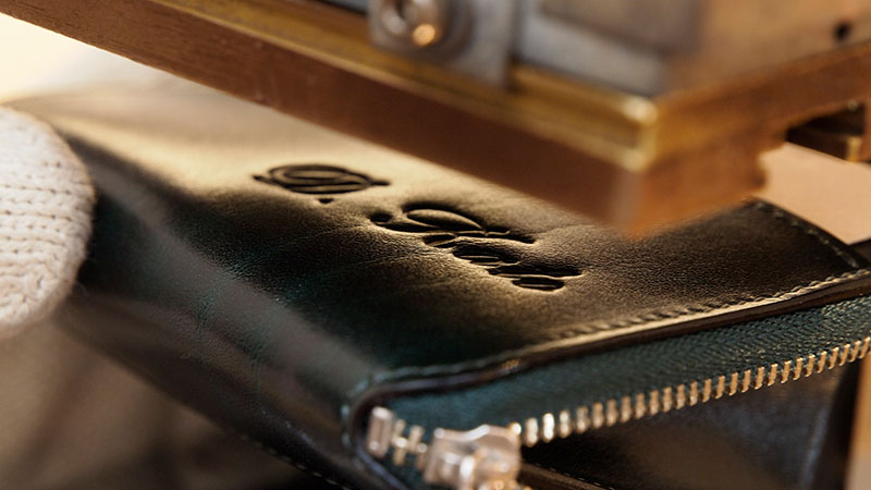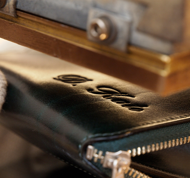 直営店舗やオンラインショップに限らず、全国の催し物会場でも無料でご利用いただけるネーム入れサービス。ほとんどの財布や小物にネームが入り、鞄にはネームタグをお付けしています。熱で焦がす「素押し」を施すので、表面の固い革でもきれいに焼印が入ります。名入れの機械はタンニンなめし革の良さを分かっていただくために創業者が自ら開発したもの。ご希望がある場合は、お気軽に店舗スタッフや催し物会場スタッフにお声がけください。 |