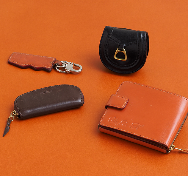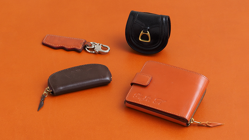 鞄いたがきの代表作「鞍シリーズ」では、鞍や馬蹄モチーフを取り入れた様々なアイテムを取り揃えています。大切な方への贈り物にお役立てください。 |